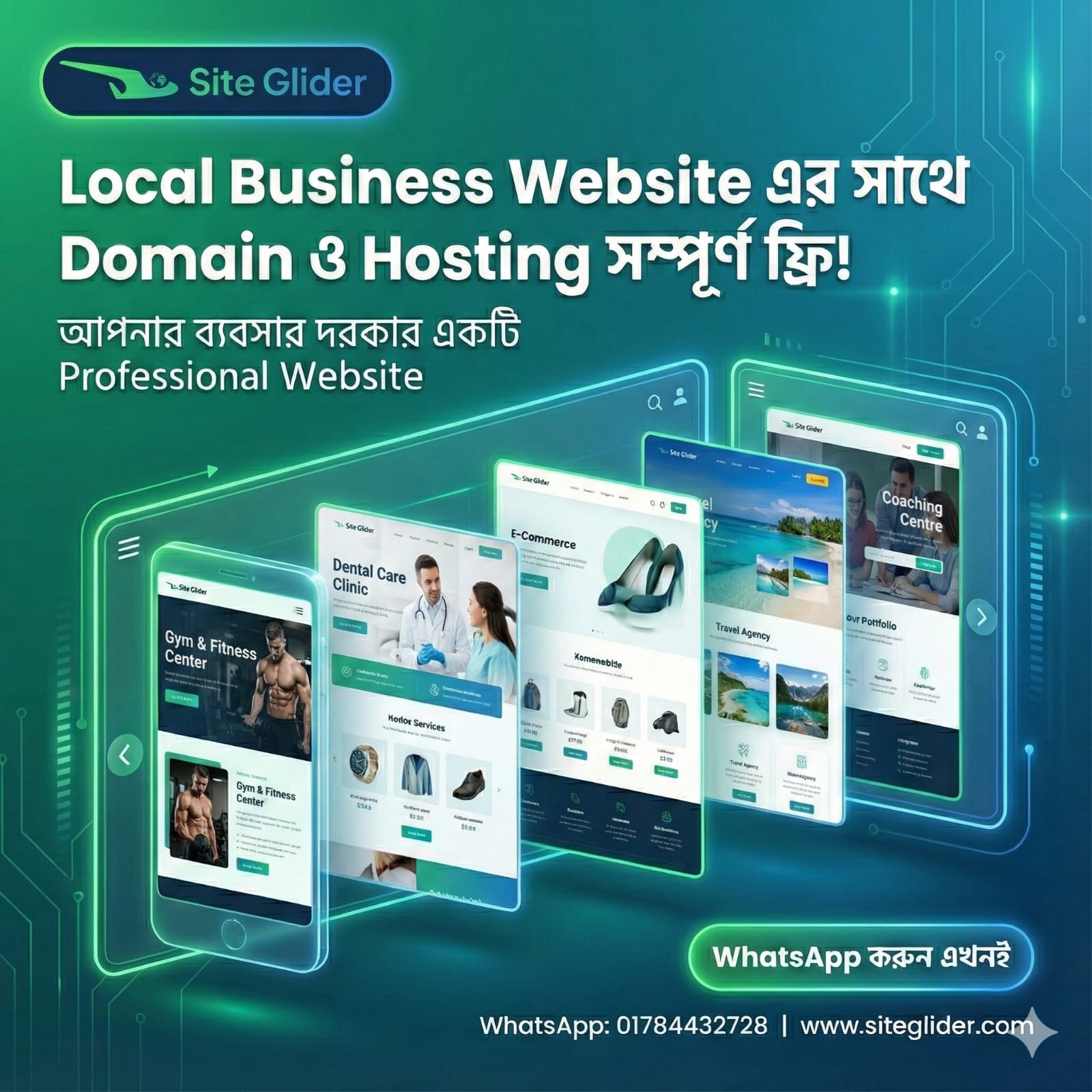 ✓ কাস্টম ডিজাইন (জিম, কোচিং, রেস্তোরাঁ, ডেন্টাল ক্লিনিক, ট্রাভেল এজেন্সি, ইত্যাদি)